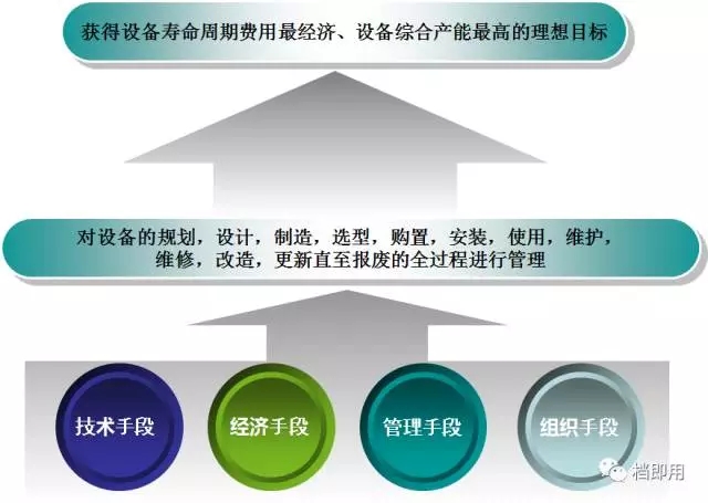以生產(chǎn)經(jīng)營(yíng)為目標(biāo),通過一系列的技術(shù),經(jīng)濟(jì),組織措施,對(duì)設(shè)備的規(guī)劃、設(shè)計(jì)、制造、選型、購(gòu)置、安裝、使用、維護(hù)、維修、改造、更新直至報(bào)廢的全過程進(jìn)行管理,以獲得設(shè)備壽命周期費(fèi)用最經(jīng)濟(jì)、設(shè)備綜合產(chǎn)能較高的理想目標(biāo)。