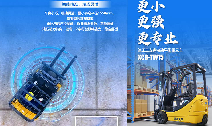 本款車型,是依托徐工集團(tuán)自有核心技術(shù)及零部件,突破傳統(tǒng)設(shè)計(jì)理念,自主研發(fā)的一款擁有綠色節(jié)能、操作靈活、舒適高效特點(diǎn)的三支點(diǎn)蓄電池平衡重式叉車。